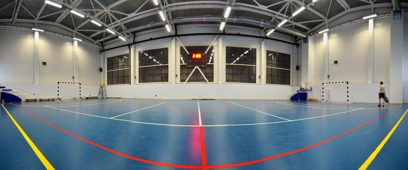 В спортивном зале (540 кв.м.) проводятся соревнования, тренировки, физкультурные занятия по волейболу, баскетболу, мини-футболу и другим видам спорта, а так же гимнастика, бег, танцы и многое другое.
