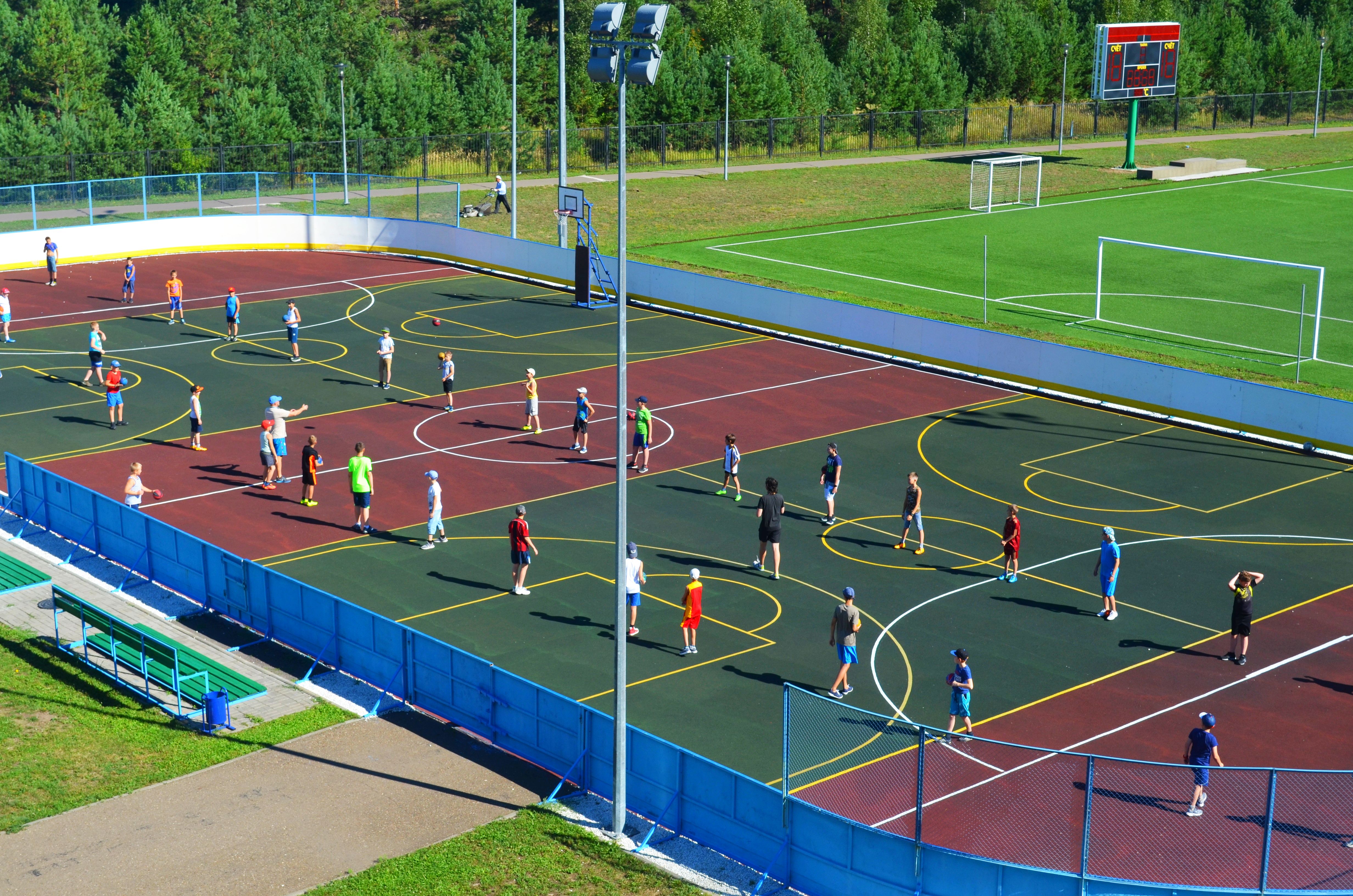В летнее время предназначена для игр в мини-футбол, баскетбол. В зимнее время - для игры в хоккей и катание на коньках.